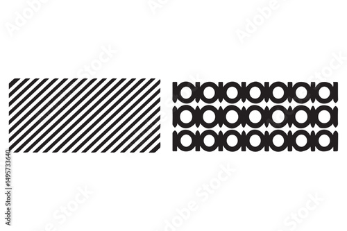 Black and white barcode set with metal line and abstract business pattern . Geometric pattern of diagonal stripes of varying thickness and alternating squares and circles