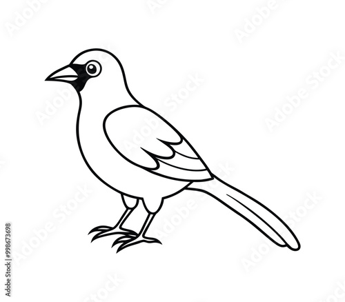 Black and white Bird line art vector on white background