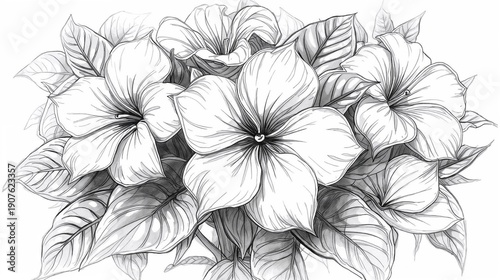 pencil sketch, clip art, garden flower, digital illustration