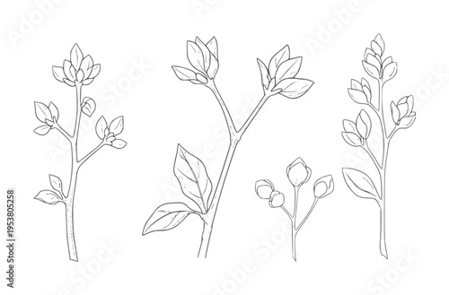botanical, line, black, white, leaf, stem, bud, monochrome, nature, plant, simple, clean, minimalist, organic, growth, flora, branch