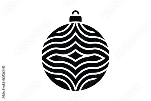 Black and White Christmas Ornament with Wavy Lines Silhouette Decoration