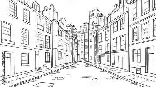street, city, building, european, architecture, urban, line, art, illustration, design, background, road, perspective, city landscape, town, house, lane, alley, old, historic, travel, vacation, view, scenic, vignetting, drawing, graphic, vector, image, element, template, pattern, texture, abstract, monochrome, black, white, simple, clean, minimalist, style, concept, vintage, retro