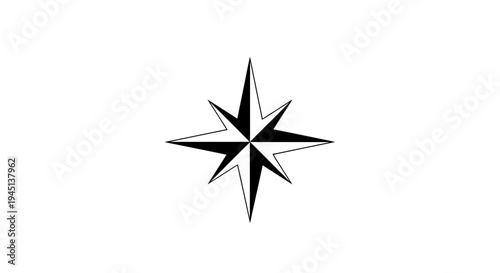 Black and White Compass Rose Star Symbol for Navigation and Direction