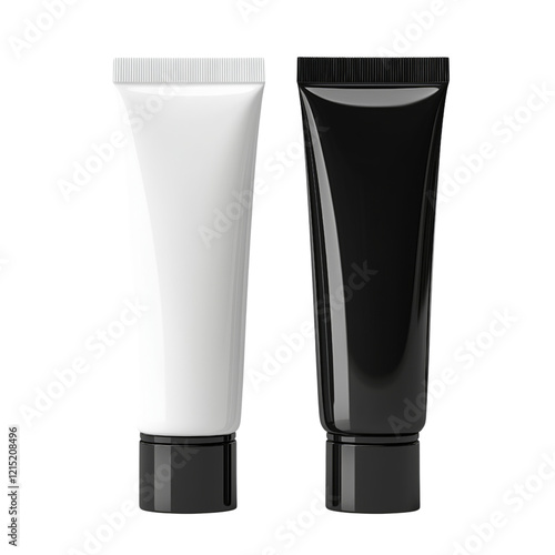 Black and white cosmetic tubes with minimalist design on white or transparent background
