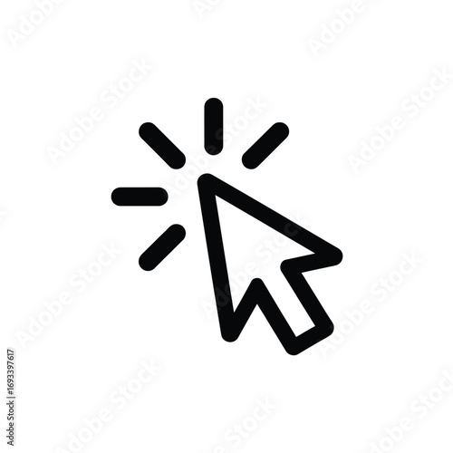 Black and white cursor icon with radiating light