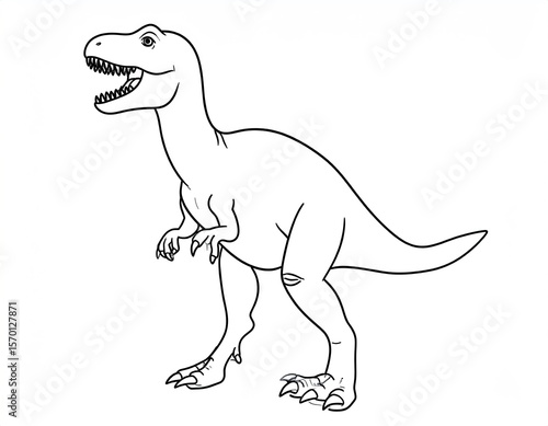 dinosaur, vignetting, black, white, outline, prehistoric, reptile, paleontology, fossil, extinct, ancient, drawing, illustration, art, simple, line, graphic, terrifying, tyrannosaurus, cretaceous, jurassic, standing, large, jaw, teeth, foot, leg, tail