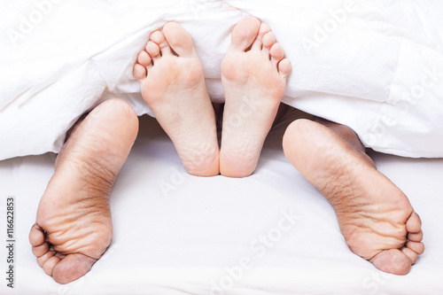 black, white, foot, interracial, couple, bed, african, american, latin, latino, mix, race, mixed, caucasian, asian, light, european, skin, colours, married, boyfriend, girlfriend, husband, wife, sleep, love, sex, sexual, romance, romantic, human relationships, together, 2, partner, sunday, morning, evening, wake up, breakfast, cuddle, constructed, enjoy, lazy, relax, on top, below, toe, cover, night