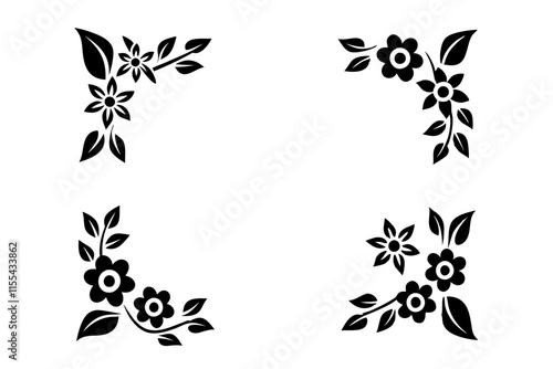 floral, flower, vector, design, pattern, tattoo, illustration, decoration, ornament, element, black, leaf, art, butterfly, frame, swirl, silhouette, set, plant, nature, shape, border, curve, tribal, ornate