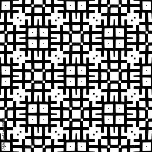 Black and white geometric seamless pattern with abstact shapes. Repeat pattern for fashion, textile design, on wall paper, wrapping paper, fabrics and home decor.