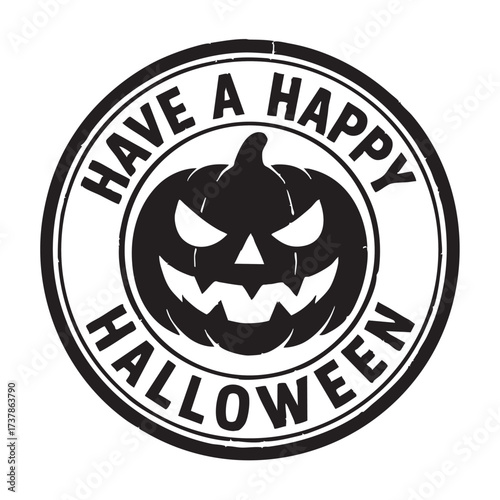 Black and white halloween pumpkin design with festive text border