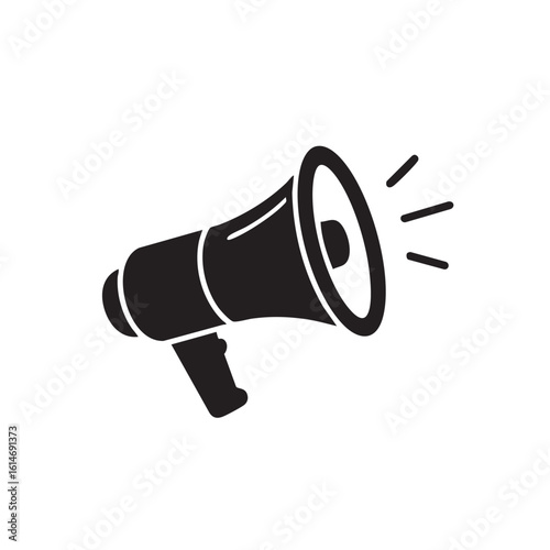 megaphone, bullhorn, loudspeaker, announcement, communication, sound, noise, alert, warning, information, public address, broadcasting, signal, message, volume, amplification, voice, speech, protest, rally, event, marketing, promotion, advertising, retro, vintage, icon, graphic, illustration, symbol, black-and-white, simple, clean, isolated, white background, audio, vocal, shout, call, attention