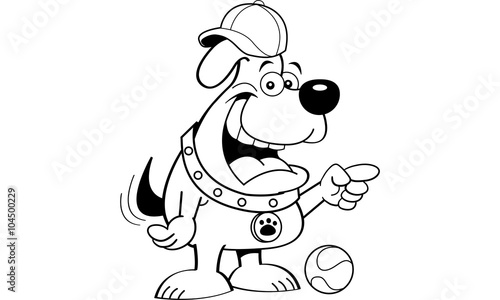 animal, athletic, ball, baseball, baseball cap, baseball hat, canino, cap, cartoon, collar, cute, dog, funny, fur, game, gesture, hat, humorous, indicating, mammal, pet, pointing, recreation, smiling, softball, sport, team sport, vector, outline, line art, colouring