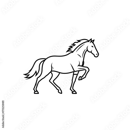 Black and White Illustration of a Prancing Horse in Minimalist Style
