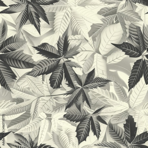 Black and White Leaf Pattern, Seamless Botanical Design, Ideal for Fabric, Wallpaper, and Home Decor