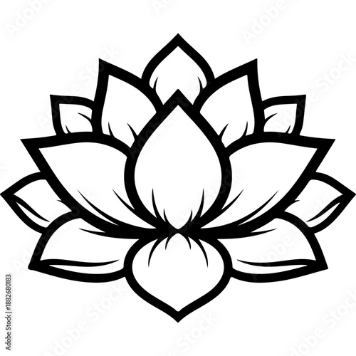 lotus flower, black-and-white, illustration, artistic, decorative, purity, nirvana, elegant, symbolism, minimalist, line art, meditation, yoga, spiritual, monochrome, graphic design, digital artwork