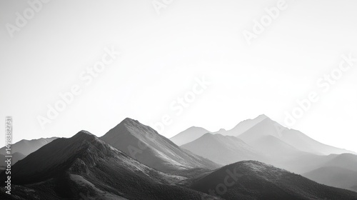 Black and white minimalist mountain landscape featuring scenic peaks and dramatic shadows