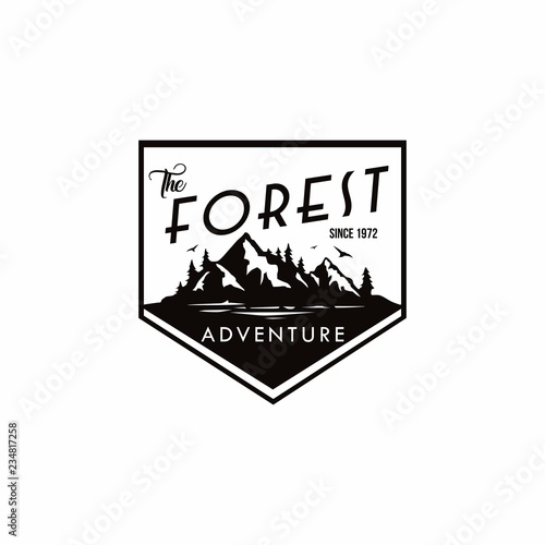 Black and White Mountain Explorer Adventure Badge Vector Template Design
