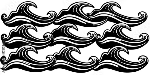 wave, ocean, sea, water, pattern, design, graphic, illustration, vector, black-and-white, monochrome, tattoo, art, print, background, texture, style, vintage, nautical, marin, coast, beach, graphic design, abstract, decorative, seamless, poster, black, white, creative