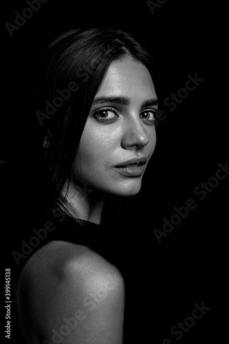 low key, black background, girl, portrait, emotion, lifestyle, beauty, young, person, people, 1, face, posing, art, society, culture, dangerous, danger, cinema, theatre, character, comic, facial expression, monochrome, woman, hair, black, beautiful, model, fashion, white, dark, eye, brunette, skin, cute, looking, glamour, head, studio, lip, make-up