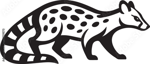 Black and white quoll silhouette with spots and striped tail, Unique quoll with dotted pattern design