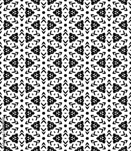 Black and white seamless abstract pattern. Background and backdrop. Grayscale ornamental design. Mosaic ornaments. Vector graphic illustration. EPS10.