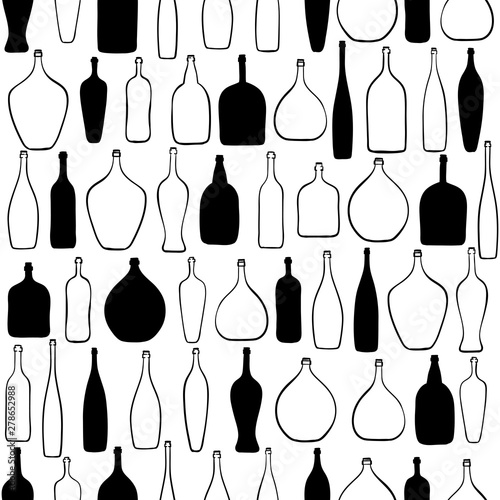 Black and white seamless pattern with bottles