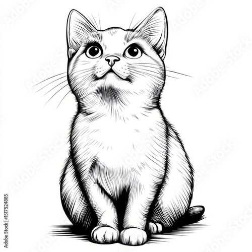 cat, kitten, felino, pet, animal, cute, fluffy, domestic, adorable, whisker, vignetting, drawing, illustration, black-and-white, line art, artistic, detailed, sitting, eye, curious, playful, digital artwork