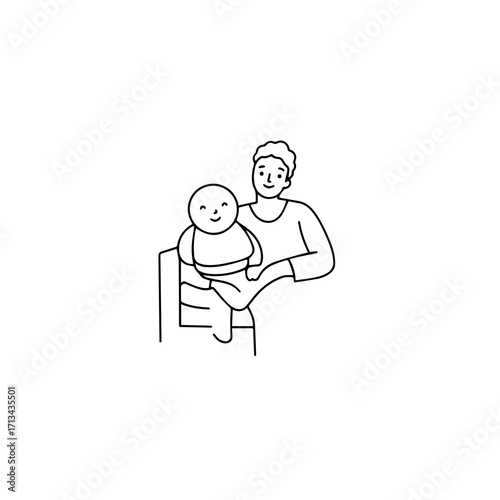 Black and White Vector Illustration of a Beautiful Mother Caring for Child in Minimalist Line Art Style