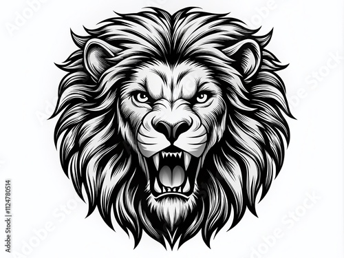 lion, angry, roar, black, white, illustration, logotype, design, template, vector, fierce, power, majestic, animal, wildlife, strength, artistic, branding, graphic, stylised, head, silhouette, monochrome, ferocious, bold, expression, detailed, character, imagery, nature, modern, sharp, dynamic, creative, concept, emblem, regal, powerful, striking, captivating, unique, eye-catching, graphic design, professional, high contrast