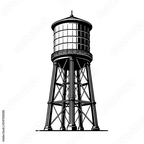 black-and-white, vector, water tower, city, utility, urban, architecture, storage, minimal