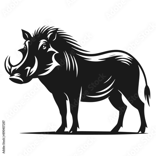 Black and white vector silhouette of a Common warthog isolated on white background
