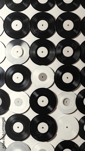 Black and white vinyl records, repeating pattern