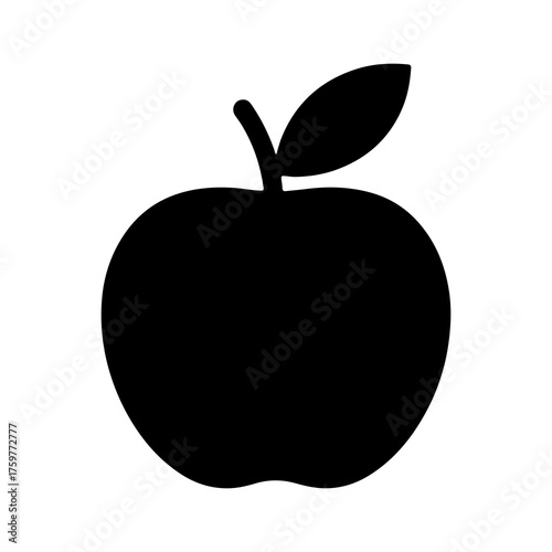apple, fruit, isolated, cut-out, transparent, background, silhouette, black, minimal, flat, organic, healthy, food, diet, snack, nourishment, leaf, plant, nature, icon, symbol, element, object, simple, clean, modern, branding, web, mobile, app, design, graphic, cut, shape, tileable, texture