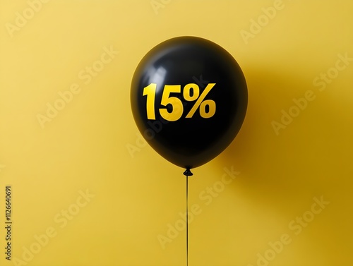 Black balloon with the text 15% on a yellow background