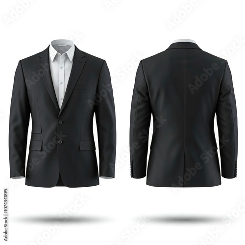 Black Blank Suit Template on Invisible Mannequin | Front and Back View Showcase for Custom Apparel Design | Versatile Men's and Women's Formal Suit Mockup for Fashion, Business Wear