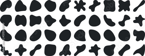 shape, organic, blob, vector, abstract, irregular, random, stain, round, liquid, background, element, splat, pattern, white, black, simple, logotype, oval, paint, silhouette, modern, smooth, stone, set, illustration, fluid, ink, pebble, blot, isolated, collection, collage, splodge, texture, contemporary, design, poster, fashion, art, geometric, graphic, branding, distortion