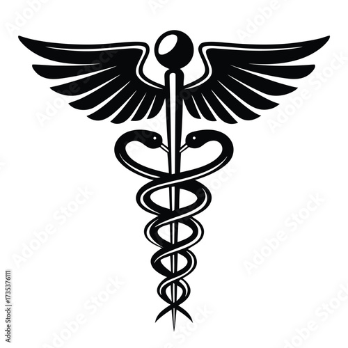 caduceus, health, health care, medicine, doctor, hospital, pharmacy, science, biology, symbol, emblem, icon, logotype, design, graphic, illustration, black-and-white, silhouette, wing, snake, staff, rod, healing, treatment, wellness, emergency, clinic, professional, assistance, care, health care, medical care