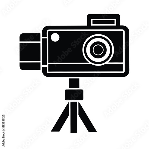 camera, tripod, photo, videography, equipment, video, recording, photo, image, picture, lens, black, silhouette, icon, symbol, clip, motion picture, still, shoot, capture, stable, support, racked, contraption, device, technology, media, content, creation, production, filming, broadcast, cinema, action, adventure, sport, travel, professional, amateur, hobby, tool, instrument, graphic, design, illustration, vector, simple