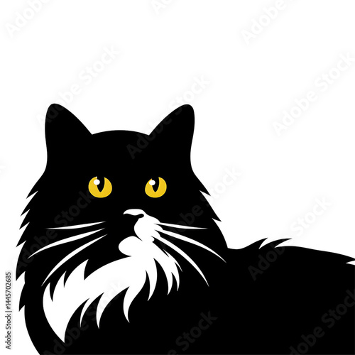 Black cat silhouette with yellow eyes isolated on white, generative ai