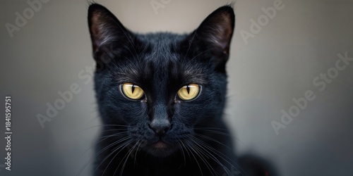 Black cat with intense yellow eyes, feline alertness, Halloween awareness day