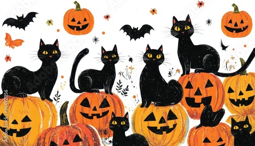 Black Cats and Jack-o'-Lantern Pumpkins for Halloween