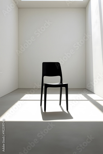 Black chair in an empty room with light and shadow. 3d rendering is generated by AI