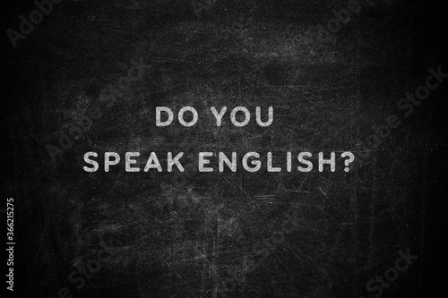 Black chalkboard with text Do You Speak English
