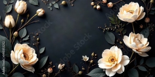 Black charcoal floral wallpaper with intricate design and texture, featuring luxurious blooms in shades of dark grey and cream , interior, patterns