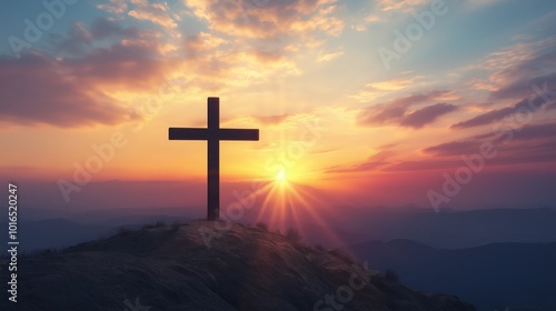 cross, christian, hill, sunset, religion, faith, christianity, sunrise, mountain, nature, peaceful, spirituality, hope, salvation, easter, good friday, peace, calmness, resurrection, forgiveness, prayer, serenity, devotion, gospel, holy spirit, morning light, grace, blessing, eternity