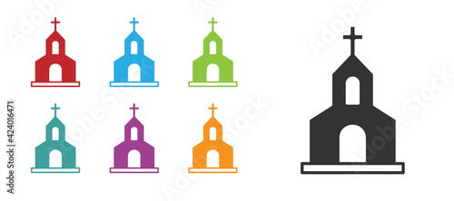 Black Church building icon isolated on white background. Christian Church. Religion of church. Set icons colorful. Vector