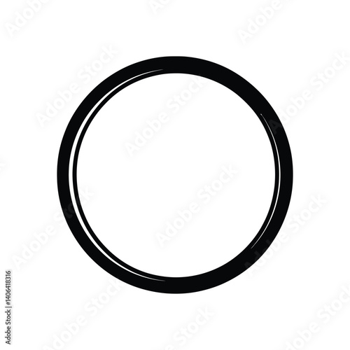 Black Circle Outline Isolated on White, Rounded Shape, Minimalist, Modern Style