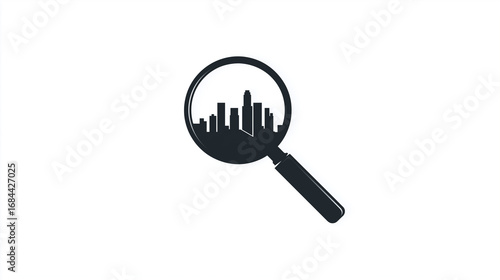 Black City Magnifying Glass Icon for Search & Urban Themes