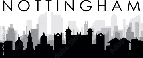 Black cityscape skyline panorama with gray misty city buildings background of NOTTINGHAM, UNITED KINGDOM