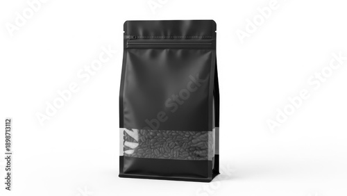 black, hot drink, bag, transparent, window, zip, closure, freshness, bean, modern, design, stand, upright, sleek, product, visual, indication, consumer, cardboard box, container, storage